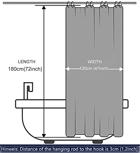 Tende Doccia Poliestere 100%, impermeabile, prova di muffa, proprietà idrofobiche, asciugatura rapida,inibiscono la crescita della muffa, può essere utilizzato sopra un angolo o su una vasca da bagno lunga. Comoda da lavare in lavatrice.