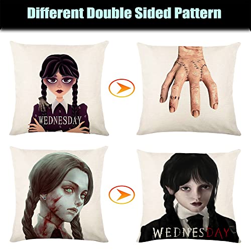 【Regalo dei fan di Addams】 2 pezzi di cuscini per divano mercoledì addams 45 cm × 45 cm, senza anima del cuscino. Reversibile con diverse grafiche, è il regalo perfetto per ogni fan di mercoledì addams.