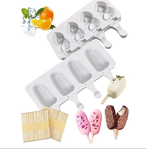 Amebleak Stampi per Ghiaccioli in Silicone, 2 Pezzi Silicone Stampi per Gelato con 100 Bastoncini di Legno, Senza BPA, Stampo per Ghiaccioli al Cioccolato Congelato Fai da Te per Bambini Adulti (B)