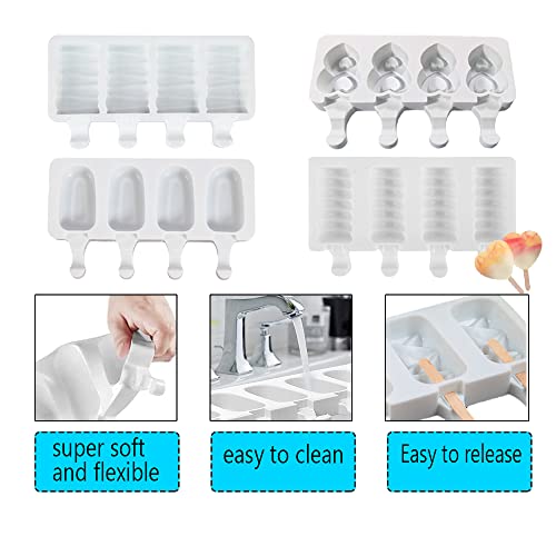 【Inizia un'estate divertente】 2 stampi per ghiaccioli a 4 cavità + 100 bastoncini, possono realizzare 8 ghiaccioli alla volta. Ogni stampo per ghiaccioli misura 21 x 12,5 x 2,5 cm, adatto a tutti i tipi di ghiaccioli, la scelta migliore per il tuo raffreddamento estivo.