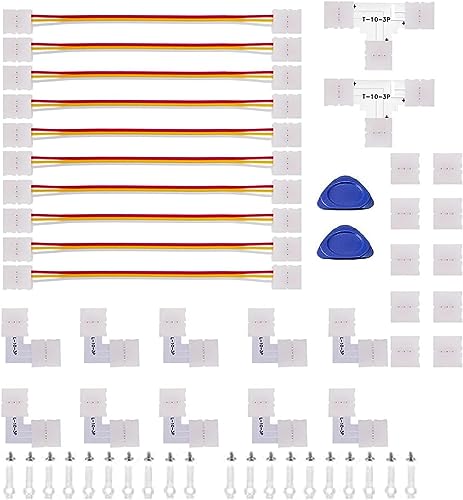 Amefil Connettore per striscia LED a 3 pin, il kit include connettore angolare LED da 10 mm per controller WS2811 WS2812, connettore cordless e T, striscia e cavo patch