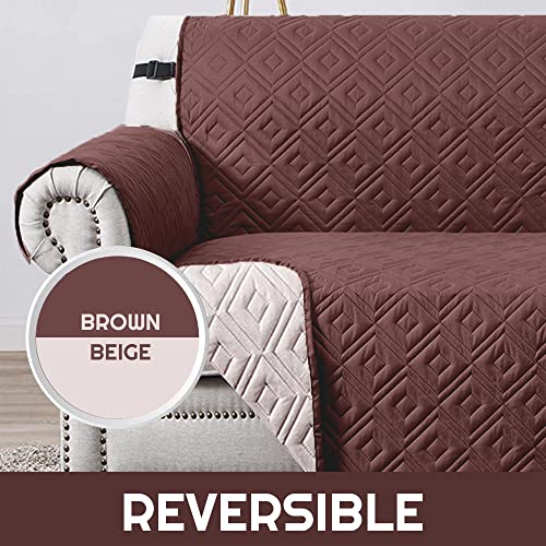 AMEHA Impermeabile Copridivano 1 Posti - Resistente a Macchie e Graffi (165 cm x 179 cm) Copridivano Reversibile per Cani Gatti e Bambini - con Cinghie Elastiche Regolabili Marrone e Beige