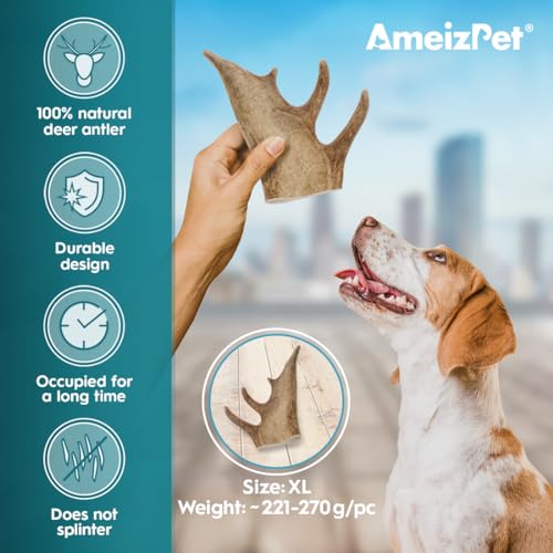 AmeizPet Cane Masticatore Di Corna, Corna Di Cervo, Osso Per Cani Di Piccola E Grande Taglia, Giocattoli Per Cani Di Lunga Durata, Osso Di Cervo - Corna Di Daino Taglia XL 1 Pezzo