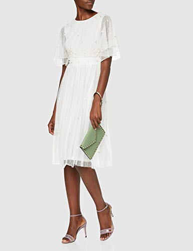 Amelia Rose Embellished Midi Skater Dress Vestito da Cocktail, Bianco, 46 Donna