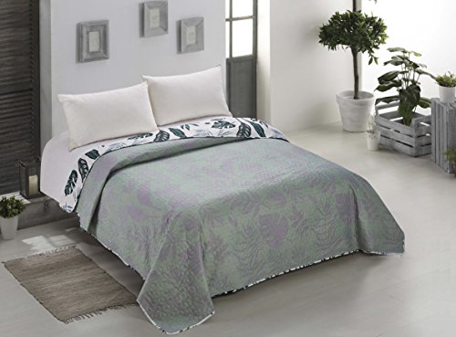 AmeliaHome Copriletto 240x260 cm Copridivano Reversibile Trapuntato Che Non Richiede Cure Speciali Monstera Foglia Pianta Bianco Verde Grigio Acciaio Verde Chiaro Antracite Botanique