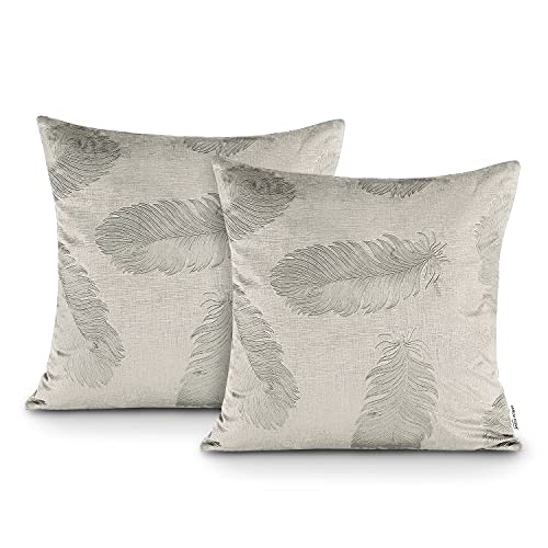 AmeliaHome 2 federe 45 x 45 cm, con chiusura lampo, effetto velluto, motivo pavone, colore: crema