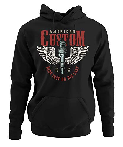 American Custom - Maglietta da motociclista, motociclista, motociclismo, chopper rider ciclomotori, rocker metal racer, 7. Felpa con cappuccio, S