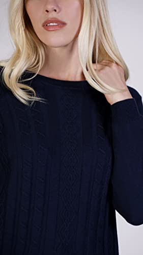 1st American Maglia Colore Blu Navy Girocollo Cashmere e Seta da Donna Lavorazione Trecce - Maglione Invernale Manica Lunga Taglia S