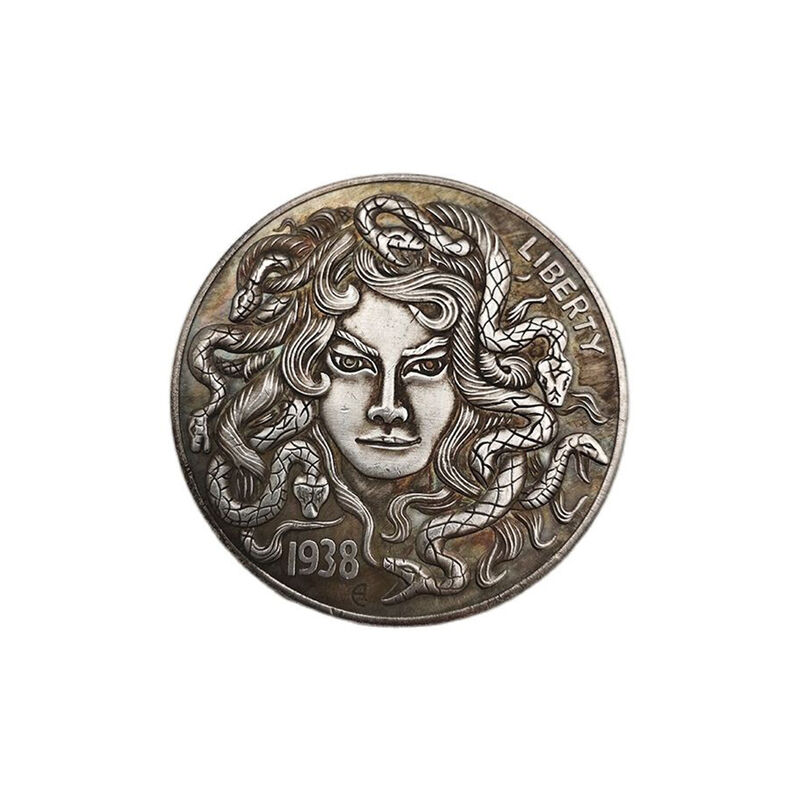 Americano Morgan Wanderer Moneta 1938 Medusa Bella Donna E Del Serpente Monete Commemorative Collection Artigianato Decorazione Della Casa RegaliNome del prodotto: Americana Morgan Wanderer Moneta CommemorativaMateriale: in ottone placcato argentoDimensioni: diametro di 38mm, spessore 2.5 millimetriAmbito di applicazione: commemorative coin collection, souvenir regali, moneta artigianato, decorazione della casa, ecc.