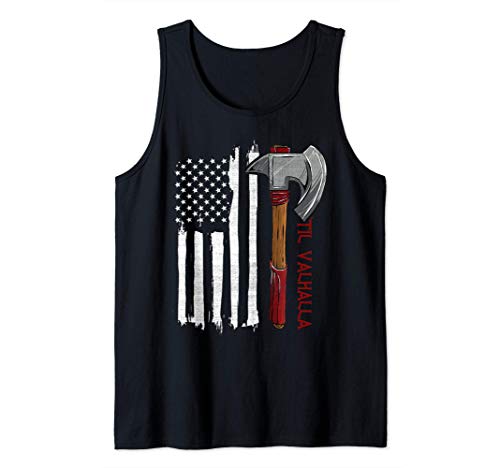 This Viking Lovers who love Vikings and Norse Culture are real Viking Fans show of the Viking Culture or Born in Iceland, Sweden, Finland, Danmark and discover Iceland, American Viking Axe Flag - Til Valhalla - Norse Mythology T-Shirt.