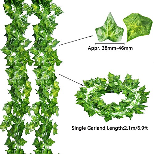 Confezione da 12 ghirlande di edera realizzate con foglie di stoffa e steli in plastica, facile da pulire e durevole, aggiungerà un aspetto ricco ed elegante a qualsiasi arredamento. Perfetto per la casa, il patio esterno o il balcone.