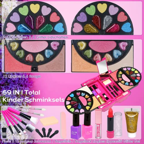 Amerrly Set Trucco per Bambini Ragazze - 59 Pezzi Set Trucco Bambini Lavabile Sicuro Ragazze, Giocattoli per Ragazze dai 4 ai 12 Anni, Regali di Natale per Feste di Compleanno per Ragazze