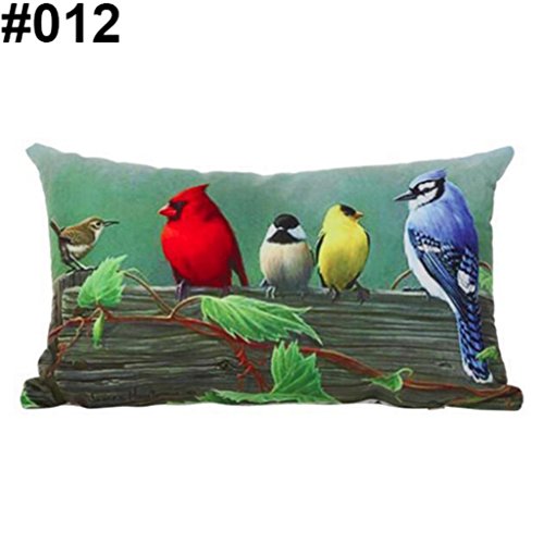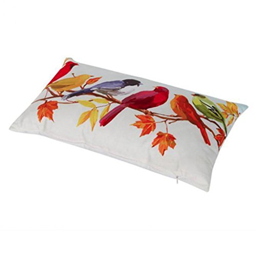 Amesii - Copricuscino rettangolare in lino, motivo: mappa del mondo, uccellini #003