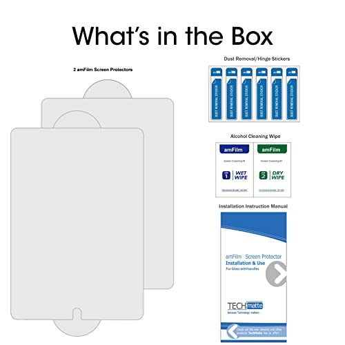 La Confezione Include: (2) Protezioni Schermo in Vetro Temperato, (1) Salviettina Umida / Asciutta, (1) Scheda per Spalmare, (6) Adesivi per la Rimozione Della Polvere, (1) Guida All'installazione e All'utilizzo