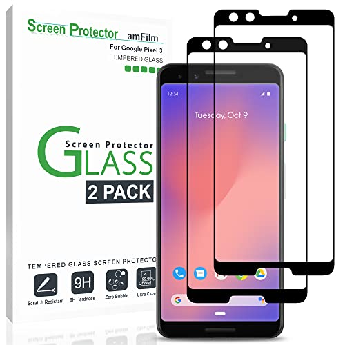 AmFilm Vetro Temperato Pellicola Protettiva per Pixel 3 (2 Pezzi), Copertura Totale Protezione Schermo per Google Pixel 3 (Nero)