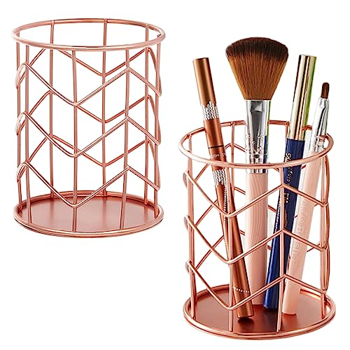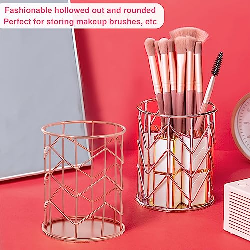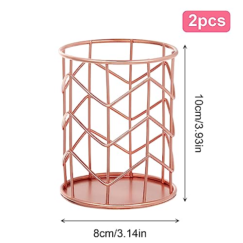 Amfrpar 2 Pezzi Portapenne da Scrivania Porta Penne Oro Rosa Rotondo Portapenne in Traforato Metallica, Portamatite in Ferro, Multifunzionale Portapenna da Organizer per Casa, Scuola, Ufficio