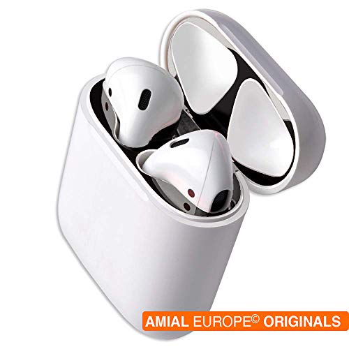 Amial Europe - Copertura Proteggi Polvere Dust Guard Compatibile con AirPods 3 & 2 & 1 & Pro Placcatura Rigida per Custodia di Ricarica Bluetooth Wireless (AirPods 1 & 2, Nero)