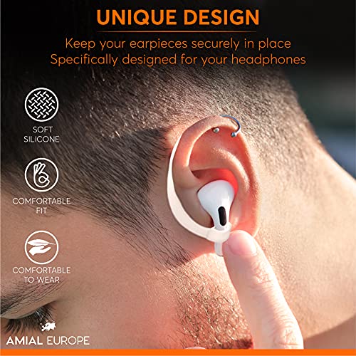 Amial Europe - Ganci per Auricolari Ear Hooks Covers Compatibili con AirPods 3 & 2 & 1 & PRO [Supporto Orecchie Sport] [TPU Extra qualità] (Bianco)