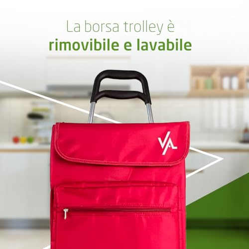 CARRELLO DELLA SPESA: Ha una capacità di 48 litri e una portata massima di 15kg, permettendoti di fare grandi spese senza preoccuparti del peso. Potrai andare al supermercato e uscire con la tua spesa in sicurezza. È un carrello della spesa resistente e duraturo grazie alla sua robusta struttura in acciaio e un solido sacco, garantendoti una lunga durata. Dimensioni: 22 x 40 x 106 cm. Colore: Rosso