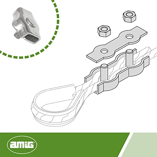 Amig - Confezione da 2 fermacavi piatti semplici in acciaio inox Mod.30105 per accoppiare corde, cavi o fili metallici, ganci o morsetti regolabili a dado, argento, misura: Ø 3 mm