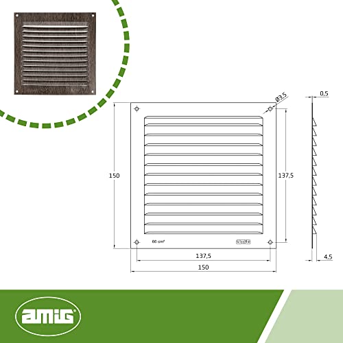 Amig - Griglia quadrata in alluminio | Griglie di ventilazione per presa d'aria | Ideale per soffitto cucina e bagno | Dimensioni: 150 x 150 mm | Colore: marrone