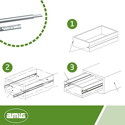 Amig Set di 2 guide scorrevoli metalliche Mod.25 in acciaio zincato per cassetti mobili, cassettiere o armadi, rimozione parziale, resistenza di carico: 15 kg/coppia, dimensioni: 153 x 17 mm