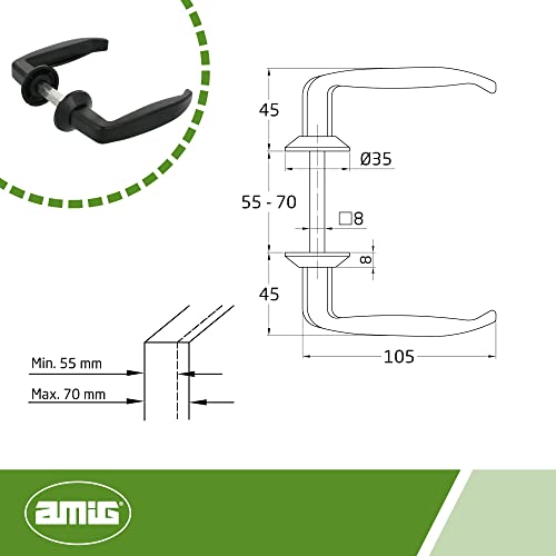 Amig - Set di maniglie nere con base in alluminio senza piastra ottimale per porte di passaggio e ingresso interni ed esterni, Misure: 105 x 40 mm