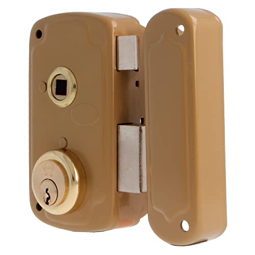 SERRATURA DI SOPONER: Serratura da sovrapporre smaltata per porte in legno di ingresso o di passaggio. Dispone di bordi rotondi, linguetta reversibile e fori svasati per fissare le viti a filo, garantendo un giunto solido e durevole.