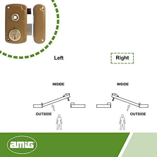 Amig - Serratura da sovrapposizione a destra con leva di chiusura, linguetta e maniglia per porte in legno Mod. 75UN 66 x 120 mm Cilindro rotondo di sicurezza in acciaio dorato