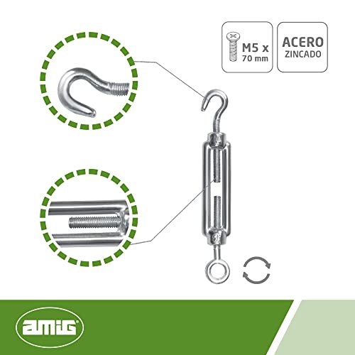 Amig Tenditore ad Anello e Gancio del Corpo filettato MOD. 30115 in Acciaio zincato | Perfetto per tendere Cavi Metallici o Fili, Tende, teloni o Candele | Misure: Vite M5 x 70 mm, Multicolore