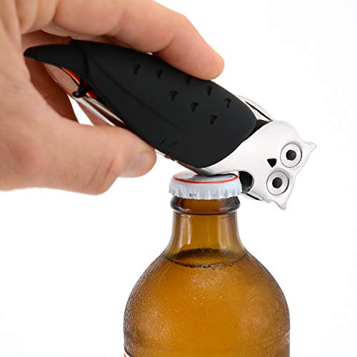 Bar Amigos Apribottiglie a forma di gufo, cavatappi professionali a tema camerieri, in acciaio inox con manico in silicone nero, taglierina in lamina | design innovativo