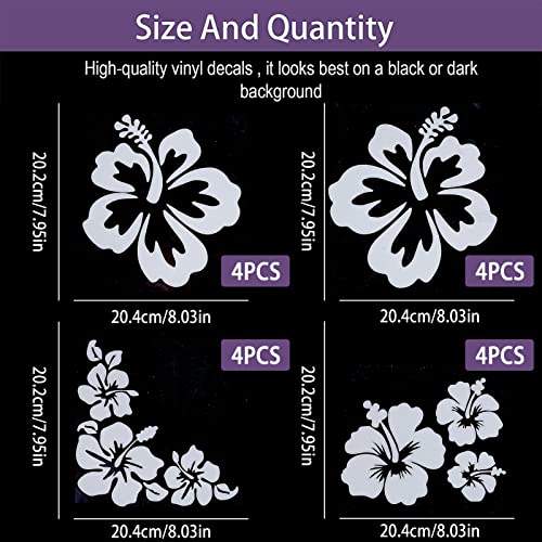 AMIJOUX 16Pcs Decalcomanie per Auto con Fiori di Ibisco per Donna Adesivi Decorativi per Esterni Automobilistici in Vinile Impermeabile Bianco Adesivo per Finestra Decalcomania per Luci del Cofano