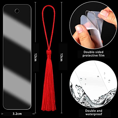 AMIJOUX Set di segnalibri in acrilico, 30 segnalibri trasparenti vuoti, segnalibri rettangolari personalizzati con nappa, per quaderni, aula fai da te e etichette per regali
