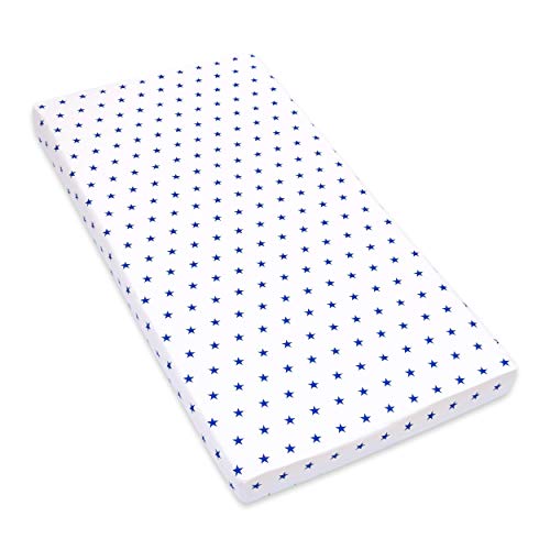 Amilian Lenzuolo con angoli elasticizzati per lettino, 60 x 120 cm, 70 x 140 cm, 100% cotone, per bambini, dimensioni: 120 x 60 cm, motivo: stelle blu su bianco