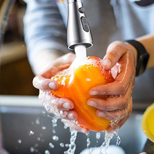 360 Degree-Swivel and Detachable Design: Questo rubinetto da cucina testa doccia può essere flessibilmente ruotato di 360 ° per la pulizia e può essere fissato a qualsiasi angolo, che lo rende molto conveniente.Copre facilmente l'intero lavello della cucina per pulire gli angoli interi del lavandino e lavare piatti, pentole e padelle, frutta, verdura e così via. L'ugello è rimovibile per pulire facilmente il calcare all'interno ed evitare che l'ugello si intasi.