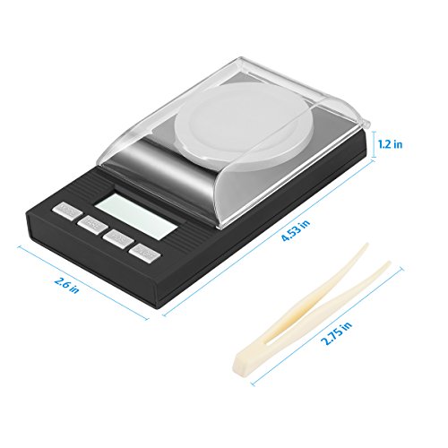 Design elegante e salvaspazio: design minimalista ed elegante, le sue dimensioni mini e compatte (dimensioni del prodotto: 115 x 66 x 31 mm) occupano spazio minimo sulla scrivania, la rende una bilancia tascabile professionale che lo rende facile da trasportare.