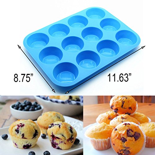 Amison, teglia in silicone con 12 pirottini per muffin, per biscotti e cupcake, antiaderente, modellata, senza bisfenolo A, lavabile in lavastoviglie
