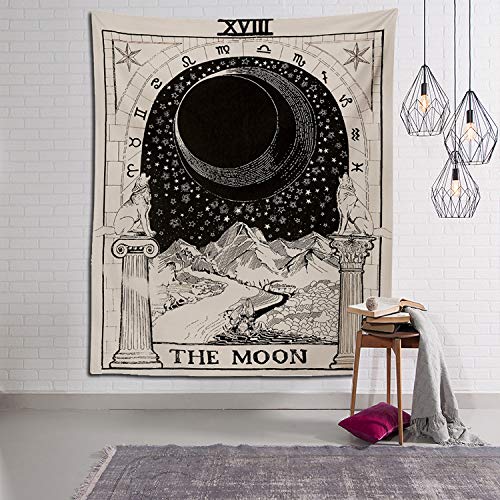 Amknn, Arazzo raffigurante le carte dei tarocchi (la luna, il sole, la stella) decorazione per la casa da appendere sulla parete, tema divinazione, Europa medioevale, misteri, tarocchi, Arazzo The Moon, 150x100cm