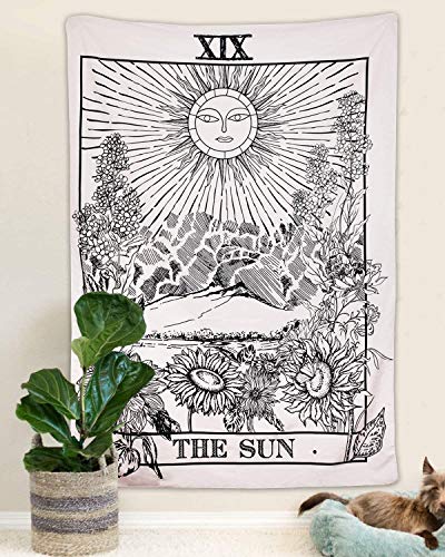 Amknn, Arazzo raffigurante le carte dei tarocchi (la luna, il sole, la stella) decorazione per la casa da appendere sulla parete, tema divinazione, Europa medioevale, misteri, tarocchi, L'arazzo del sole, 150x130cm