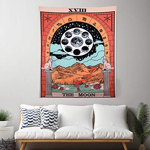 Amkun, arazzo in stile tarocchi con luna, stelle e sole, arazzo medievale europeo per divinazione, da appendere e come decorazione misteriosa per la casa e la camera da letto, Moon Tapestry, 150 x 200 cm