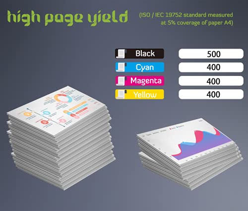 Alta capacità: 500 pagine per nero, 400 pagine per ciano, magenta, giallo.