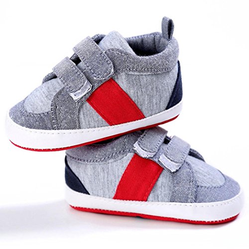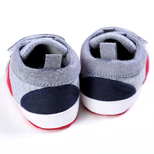 Amlaiworld per 0~18 Mesi, Neonato Hook And Loop Culla Scarpe da Ginnastica Morbida (12~18 Mesi, Grigio)