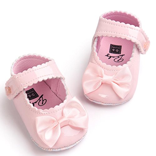 Amlaiworld per 0~18 Mesi, Pattini di Bambino Ragazza Bowknot Leater Antiscivolo (12~18 Mesi, Rosa)