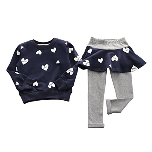Amlaiworld Bambini Ragazze Sport Tuta,Amore Cuore Maglia + Pantaloni Gonna (110, Blu Marino)