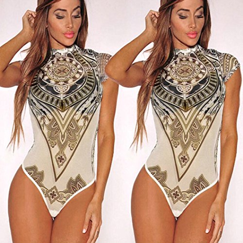 Amlaiworld Donna Tuta,Donna Estate Stampa Voile Prospettiva Body Tuta (L, Bianco)