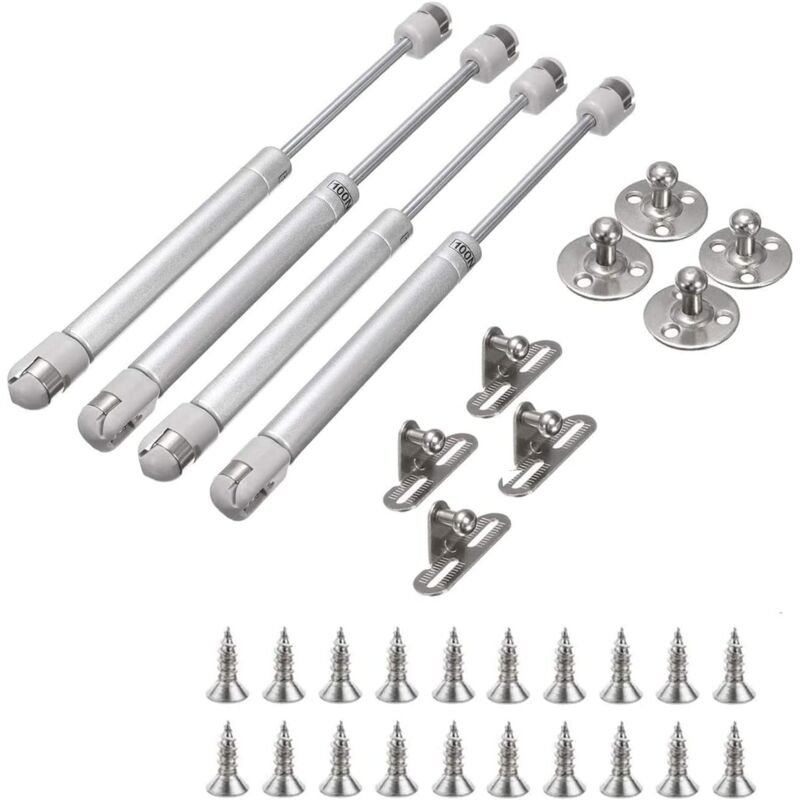 Descrizione del prodotto: Le molle a gas sono realizzate in plastica ABS e solida lega di zinco, gli alberi sono realizzati in materiale di alta qualità e sono molto resistenti e durevoli, ampiamente utilizzati in armadi e porte. Ogni molla può sopportare una pressione di 100 N e un cuscino d'aria di 100 N può sopportare un peso di 10 kg. Il cilindro del pistone è riempito con gas inerte ed è comprimibile per garantire stabilità e sicurezza. Funzione: questo sollevatore con molla a gas apre e chiude lentamente gli armadi sollevati. Quando si apre il coperchio, la molla a gas salvaspazio si estende automaticamente e senza interferenze. Cela empêche le couvercle de l'armoire de se refermer brusquement et évite également de se pincer les doigts, vous offrant ainsi une tranquillité d'esprit. Caractéristiques: Installation plus facile des vérins à gaz à l'aide preventivo. Installazione semplice e stabile tramite viti. La piastra di montaggio rotonda in metallo e la posizione a tre punti