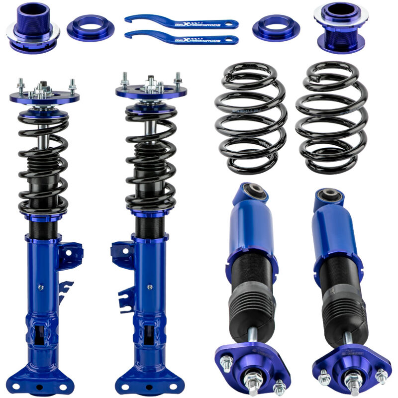 328i for BMW Z3 (E36) Coupe & Roadster 1996-2002 Specifiche Altezza regolabile: abbassamento di 1-3 pollici Smorzamento: non disponibile Supporti superiori: supporti superiori a sfera con camber plate Rigidità della molla Anteriore: 8 kg/mm (448 lbs/in) Rigidità della molla Posteriore: 7 kg/mm (392 lbs/in) Lunghezza molla anteriore: 180 mm Lunghezza molla posteriore: 183 mm Lunghezza totale coilover Anteriore: 560mm-683mm Lunghezza totale coilover Posteriore: 450mm-535mm Tipo di ammortizzatore: doppio tubo Precarico molla: 7-10 mmn) Caratteristiche 1. Regolazione dell'altezza ribassata da 1''-3'' che consente un