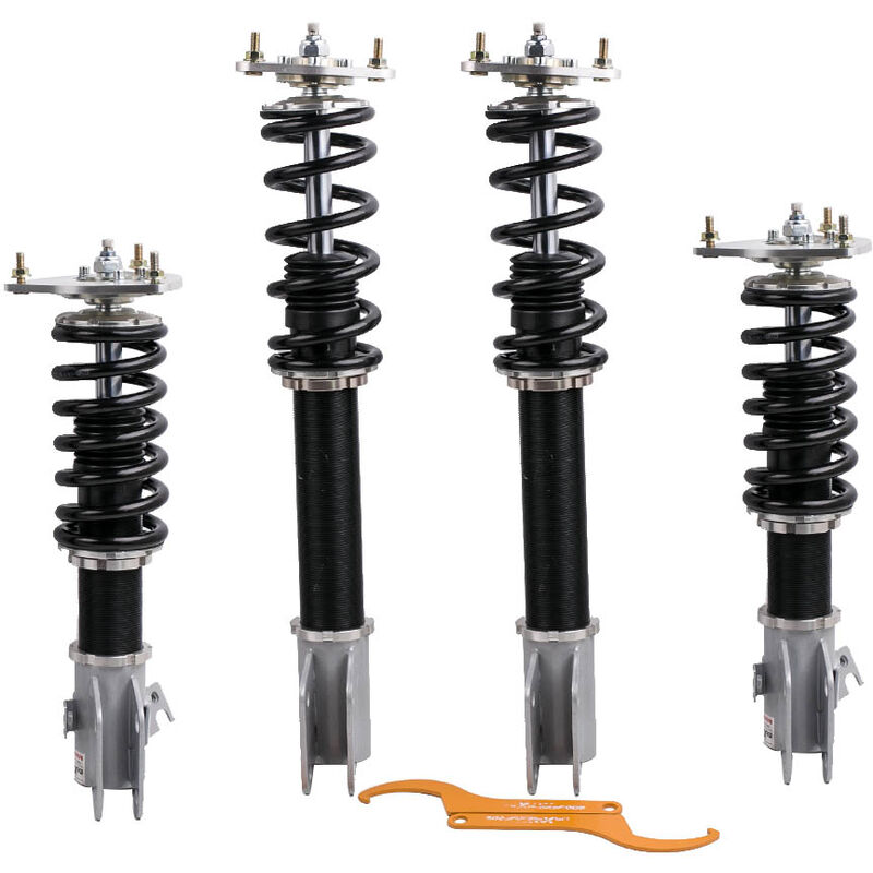 Applicazione Per Subaru Impreza WRX 2000.08-2007.06 GDA GD9 GGA Per Subaru Impreza WRX STI 2000.10-2004.06 GDB (RIM P.C.D.=100) Per Saab 9-2X 2005-2007 GGA GGE Specifiche Tecniche Quantità: 2 pezzi anteriori + 2 pezzi posteriori Rigidezza della Molla Anteriore: 9 kg/mm (504 lbs/in) Rigidezza della Molla Posteriore: 7 kg/mm (392 lbs/ in) Damper Regolabile in 24 livelli Altezza Regolabile: Sì Piastra dell'inclinazione regolabile: Sì Caratteristiche * Altezza da terra regolabile * La tensione della molla precarico regolabile * Palla a forma di cuscino su top mount -- questo design contribuisce a combattere il rumore durante l'accordatura. Inoltre, migliora la sensibilità e la risposta dello sterzo * La maggior parte dei componenti sono realizzati in 6061 Alluminio con T6 per migliorare la durezza - i vantaggi sono l'eccellente resistenza e l'alluminio aiuta a ridurre il peso. * La trazione della molla è di alta presentazione - Test continua di 600,000 volte, la distorsione della molla è