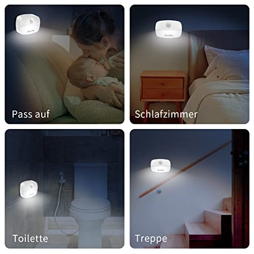 AmmToo Scale Luce Notturna, 4 Pezzi Luce Notturna con Sensore Movimento, luce di cortesia notturna con Batteria, per armadio Credenza Corridoio Bagno Cucina e Camera, luce emergenza