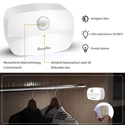 ❤ 【 AmmToo luce notturna con sensore di movimento】La luce notturna del sensore di movimento AmmToo è appositamente progettata per rilevare i movimenti al buio, quando qualcuno passa all'interno del raggio di rilevamento (3-5 metri) e la luce notturna si accende naturalmente, si spegne dopo 30 secondi (no viene rilevato il movimento).